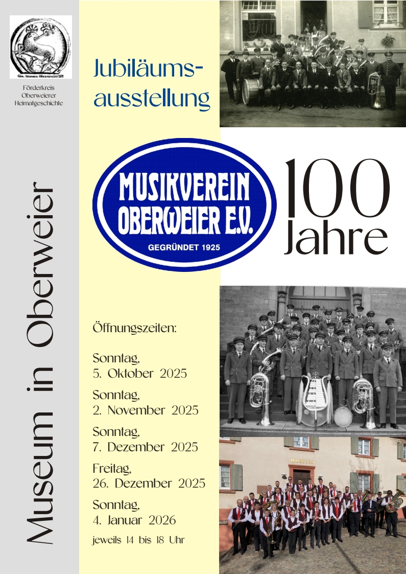 Die Sonderausstellung „100 Jahre Musikverein Oberweier“ öffnet an diesem Sonntag zum ersten Mal von 14:00 Uhr bis 18:00 Uhr. Die Besucher können […]